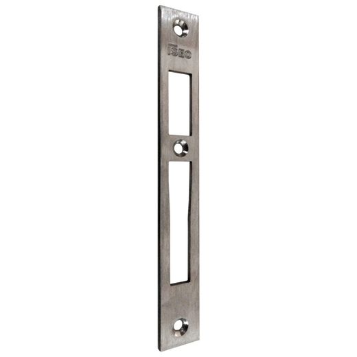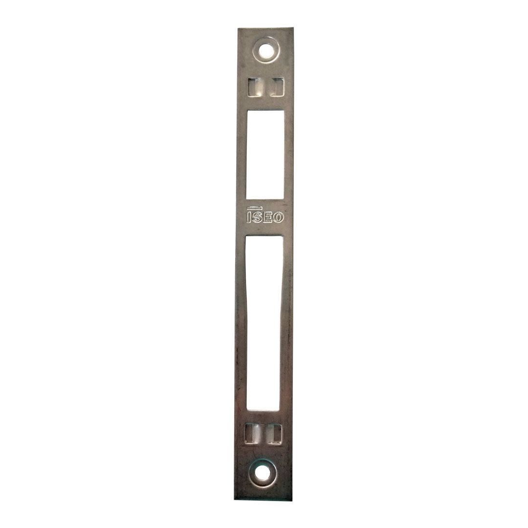 Es la pieza de compra adecuada para tu cerradura multipunto embutida ISEO (Performa o Electa). Fabricado con acero inox y diseñado para encajar en perfiles de puertas metálicas de 24 mm, ofrece robustez, estética y compatibilidad total con la gama ISEO. Compatible con las cerraduras embutidas multipunto Performa o Electa, que utilizan cilindro de perfil europeo, con distancia entre ejes de 85 mm, y resbalón o palanca central accionada mediante engranajes. El cerradero central plano es la pieza de acero inoxidable dentro del marco donde encaja el resbalón o palanca de cierre de la cerradura.