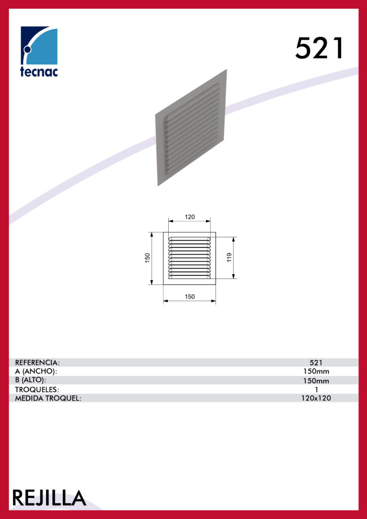 - Referencia de producto: Rejilla 521 – dentro de la categoría “Rejillas” en el apartado Varios del catálogo TECNAC.